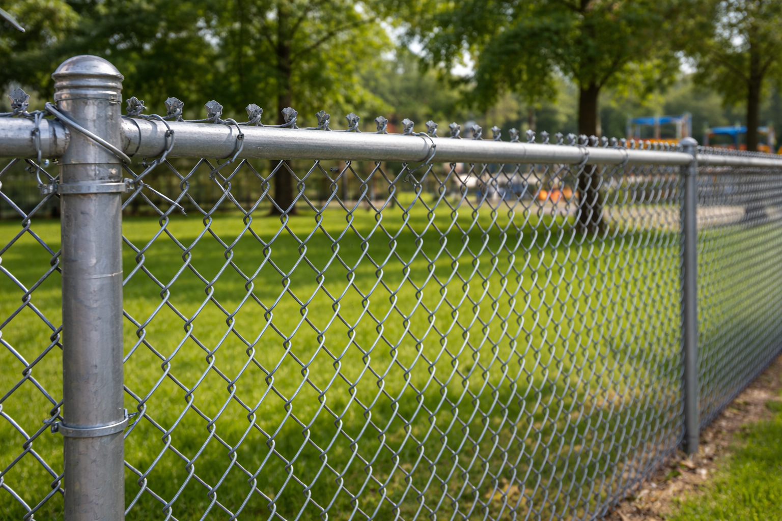 A flexible, woven mesh made from galvanized or coated wire. Chain link fences are used for residential perimeters, playgrounds, sports fields, and industrial boundary demarcation.